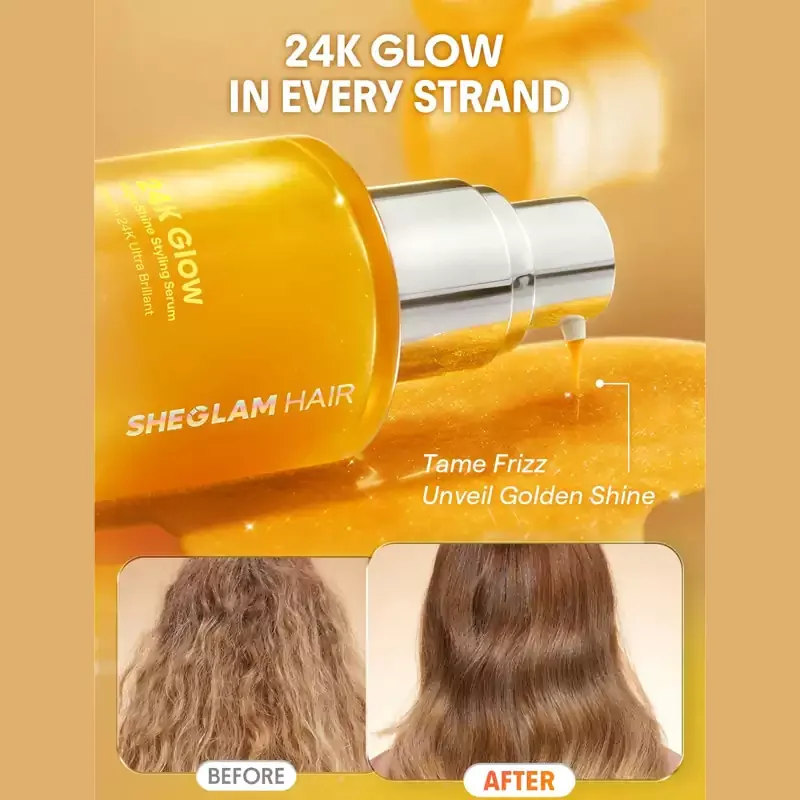 سرم مو طلا شیگلم (Sheglam 24K Hair Serum) با ترکیبات طبیعی و مغذی، به حجیمتر و براقتر شدن موها کمک میکند و ظاهری سالم و جذاب به آنها میبخشد.