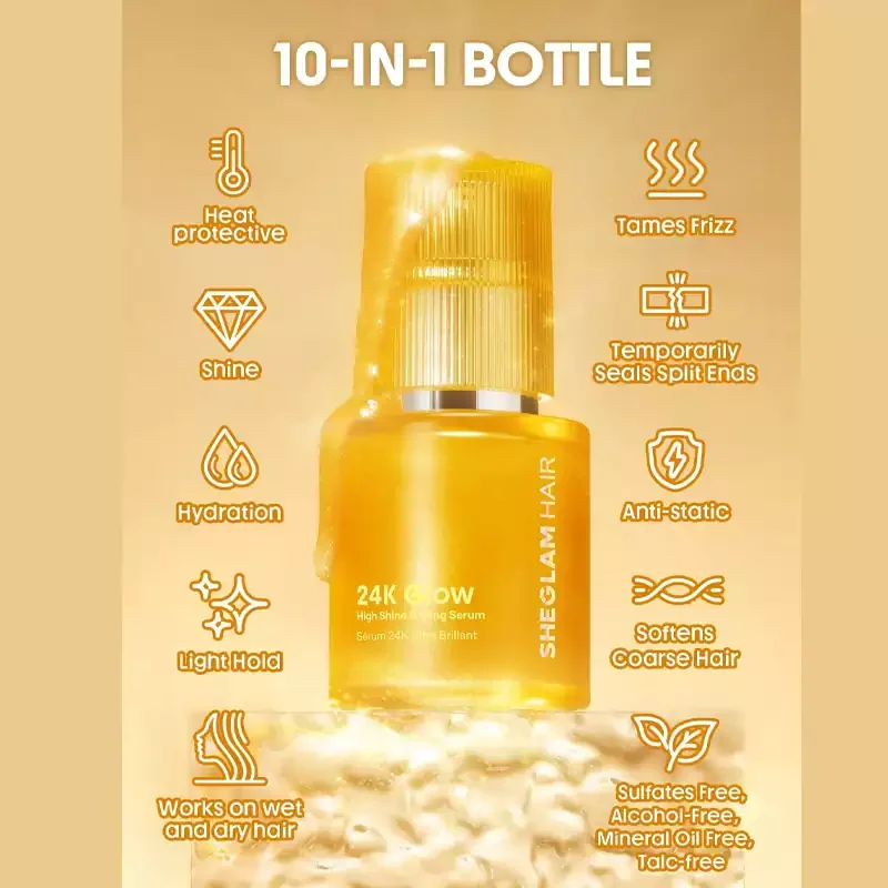 سرم مو طلا شیگلم (Sheglam 24K Hair Serum) ✨💛 یک محصول لوکس با ۱۰ خاصیت کلیدی برای مراقبت و زیبایی موها است که همزمان باعث نرم و ابریشمی شدن موها 🥰، افزایش درخشندگی ✨، جلوگیری از وز شدن مو 🌬️، کاهش الکتریسیته ⚡، محافظت در برابر حرارت 🔥 و آبرسانی بهتر 💧 میشود. این سرم با فرمول سبک و غیرچرب 🌿 و ترکیبات وگان 🐰 مناسب استفاده روزانه است و موها را تقویت، سالم و شاداب نگه میدارد، همچنین به کاهش موخوره و شکستگی ✂️ کمک میکند، بنابراین انتخابی ایدهآل برای موهای خشک، آسیب دیده یا وز به حساب میآید.