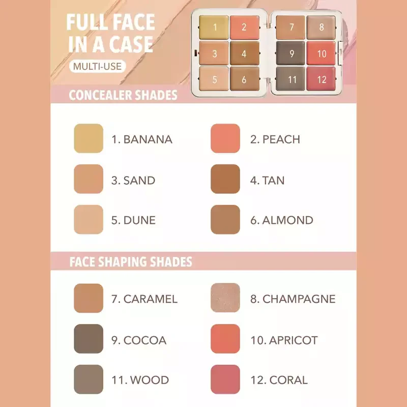 کانتورهای این پالت دارای بافت کرمی و لطیف هستند که بهراحتی روی پوست پخش میشوند و بدون ایجاد خط، ماسیدگی یا جمع شدن، جلوهای طبیعی به چهره میدهند. این ویژگی باعث میشود فرمدهی صورت کاملاً یکدست و حرفهای انجام شود.