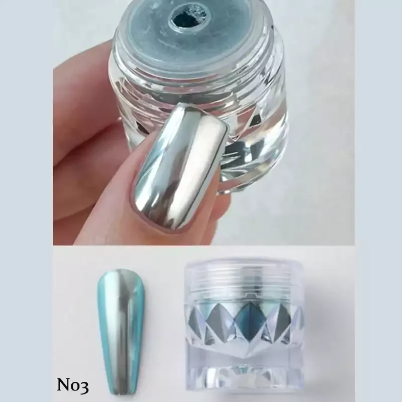 کروم جواهری نقرهای انتخابی عالی برای طراحی ناخن لوکس، مجلسی و رسمی است. اگر میخواهید ناخنهای شما همچون الماسی درخشان در مجالس و مهمانیها بدرخشد، پودر کروم جواهری نقرهای مدل Moonlight Mirror بهترین گزینه خواهد بود.