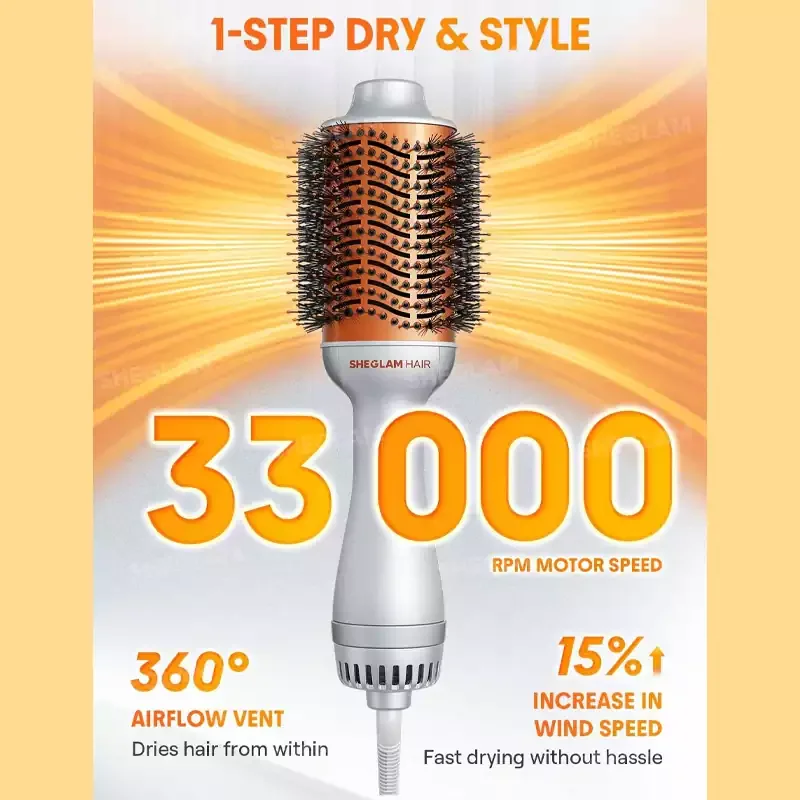 این برس حرارتی مجهز به موتور 33,000 دور در دقیقه است که جریان هوا را بهصورت 360 درجه پخش میکند و باعث خشکشدن یکنواخت و سریع موها میشود.