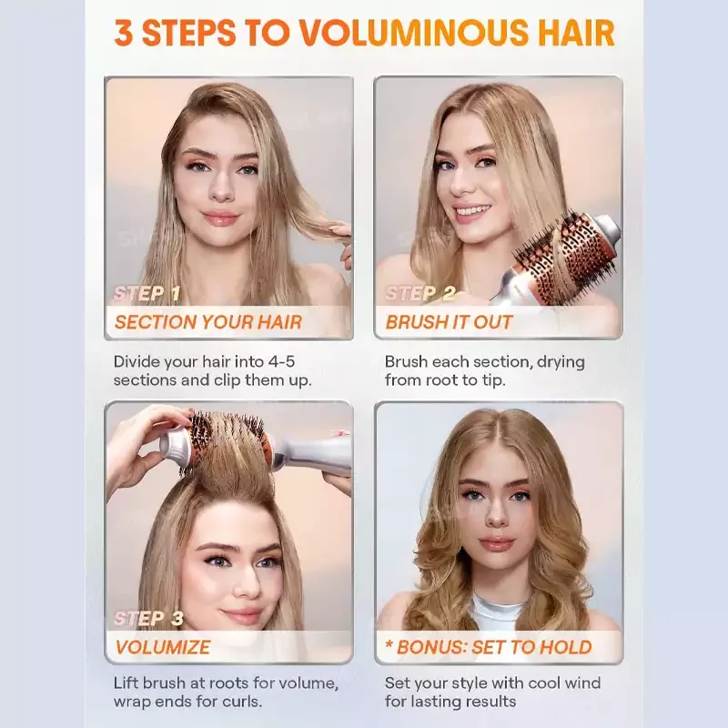 این برس حرارتی چندکاره با طراحی هوشمندانه خود، آسیب حرارتی به موها را به حداقل رسانده و به حفظ سلامت، نرمی و درخشندگی مو کمک میکند.