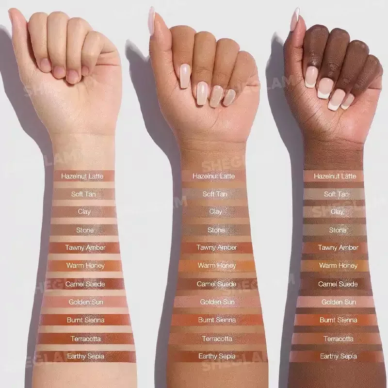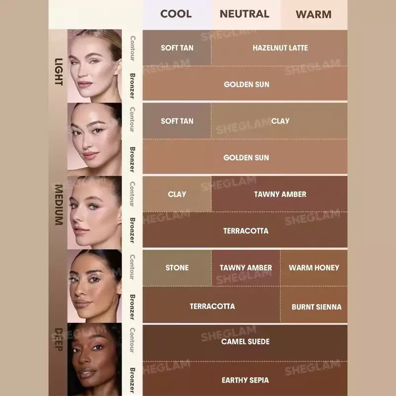 رنگ Camel Suede قهوهای تیره و عمیق بوده و برای کانتورینگ عمیق پوستهای تیره با تهرنگ گرم یا خنثی گزینهای حرفهای محسوب میشود.