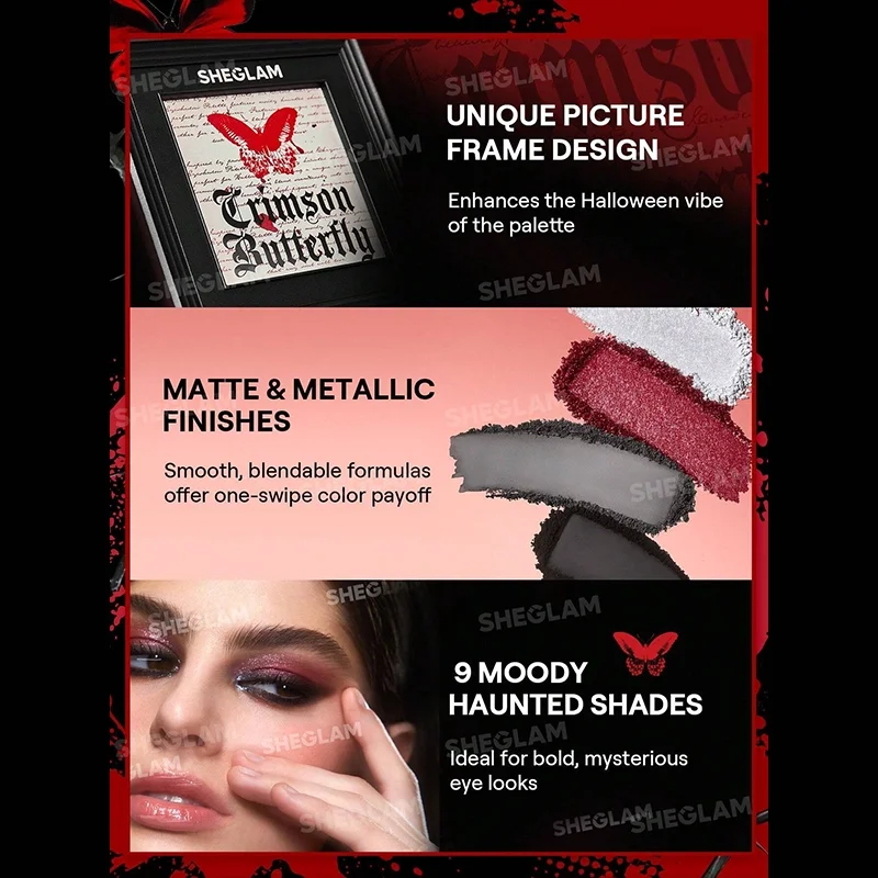 پالت سایه شیگلم – مدل Cursed Chrysalisیکی از باکیفیتترین انواع پالت سایه شیگلم است که برای برای میکاپهای هالووینی، تمهای قرمز و مشکی، اسموکی و جلوههای فانتزی طراحی شده است.
