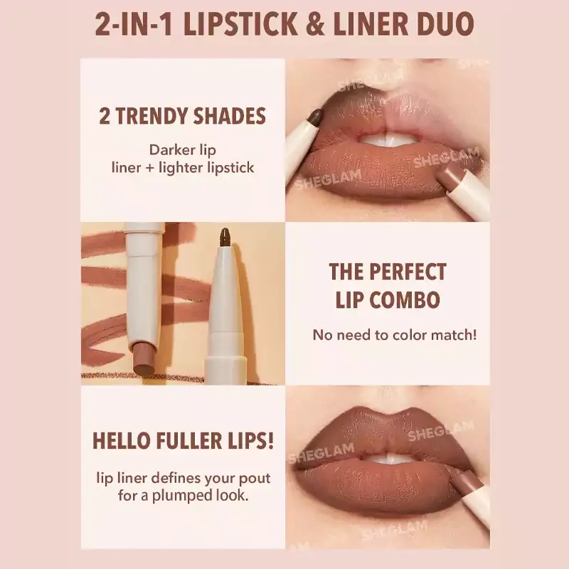 رژلب و خط لب دوطرفه شیگلم یکی از پرفروشترین و محبوبترین محصولات برند Sheglam است که ترکیبی کاربردی از خط لب باکیفیت و رژلب جذاب را در یک محصول ارائه میدهد. این محصول با پیگمنت بالا رنگی غلیظ و ماندگار روی لبها ایجاد میکند و برای استفاده روزانه و آرایش حرفهای انتخابی ایدهآل است.