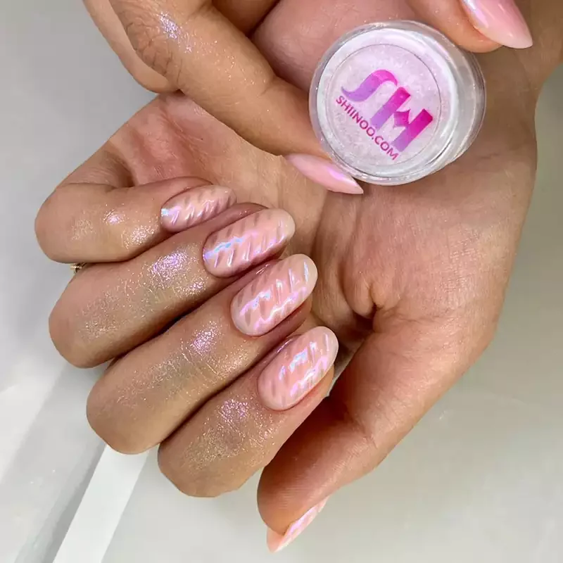 با استفاده از این پودر، ناخنهای شما با بازتابی نرم و فلزی در سایهی صورتی درخشان، به جلوهای بینظیر و بهیادماندنی تبدیل خواهند شد. 🌸💖