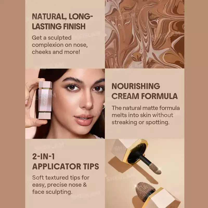 اگر دنبال محصولی هستی که بتونه با چند حرکت ساده، فرم صورتت رو متعادلتر، زاویهدارتر و درعینحال طبیعیتر نشون بده، کانتور مایع شیگلم دقیقاً همون چیزیه که باید امتحانش کنی 💫 این محصول با فرمول سبک و رنگدانههای غلیظش، بهت کمک میکنه خطوط چهرهات رو برجستهتر و متقارنتر بسازی؛ درست مثل یک آرایشگر حرفهای در خانه!