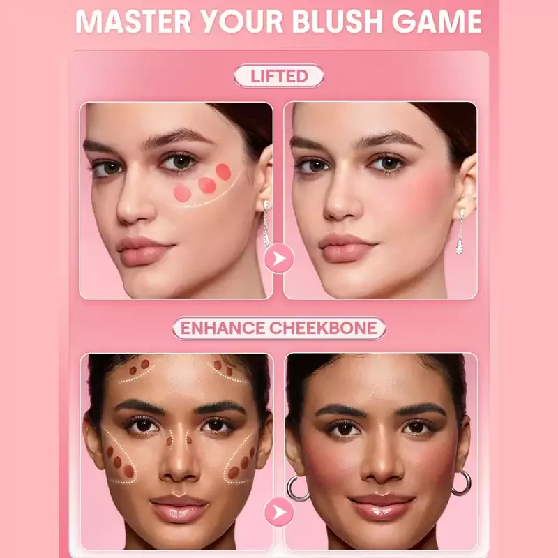 برای استفاده از رژگونه مایع شیگلم، ابتدا مراحل اولیه میکاپ شامل پاکسازی پوست، استفاده از مرطوبکننده و کرمپودر را انجام دهید. سپس میتوانید رژگونه را به دو روش زیر استفاده کنید:
