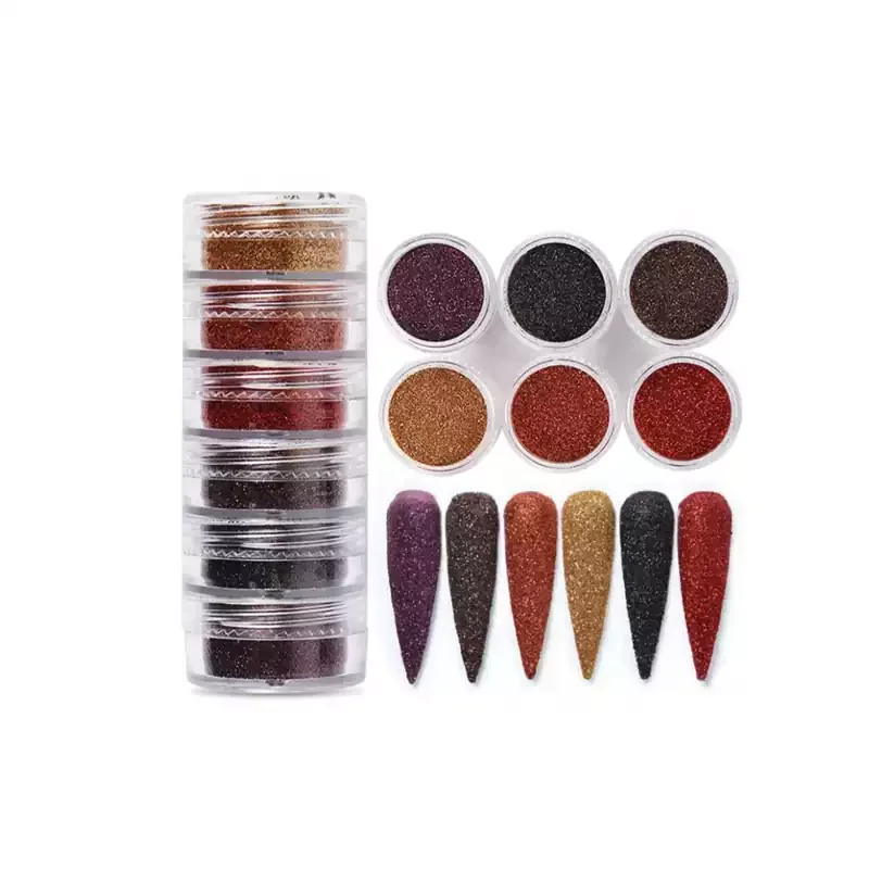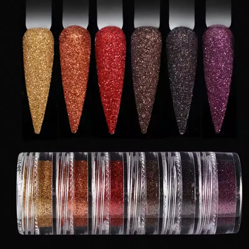 پودرهای شوگر مدل اسپرسو مرحله نهایی دیزاین شما را کامل کرده و جلوهای شنی و درخشان به ناخنها میبخشند.